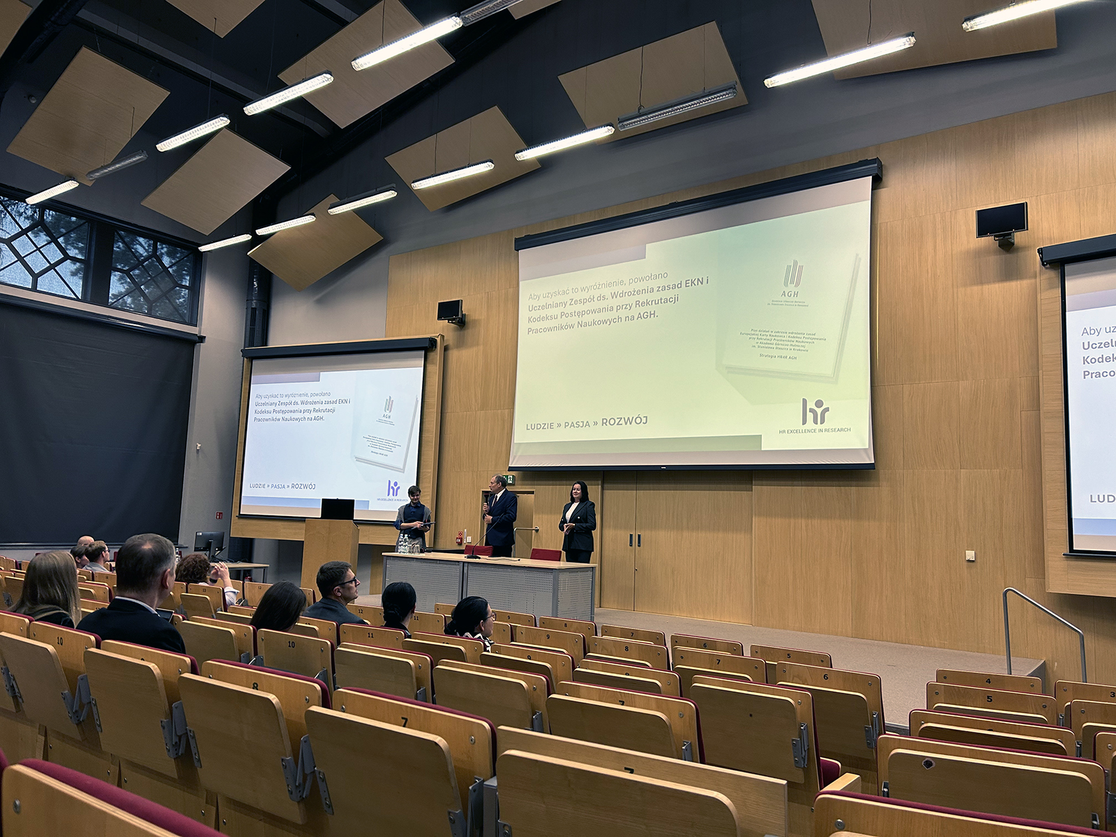 HRS4R Days at AGH University of Krakow organized on September 24-25, 2025 in Krakow was an event dedicated to improving the quality of work in the academic environment and supporting the development of scientific careers. The program included lectures on topics such as requirements and procedures for scientific promotion, the principles of the European Charter for Researchers and the HR4R strategy at AGH University, AGH University’s human resources policy, the use of artificial intelligence in science, equality and accessibility in research and teaching, EU funding for research projects, modern tools for cloud data storage.